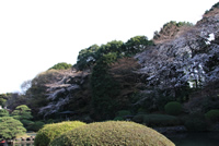 開花から1週間のこの日、最後は新宿御苑の桜です。 ここも、まだつぼみが目立つ状態でした。 |