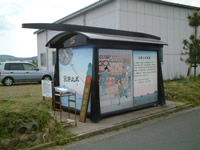 松並木を越え、妙日寺の門前を過ぎると、久津部の一里塚跡があります。片方は小学校の敷地内に、片方は民家横に、一里塚があったことを示す案内板が建っています。 写真左と右:小学校の敷地内 写真中央:民家横 |