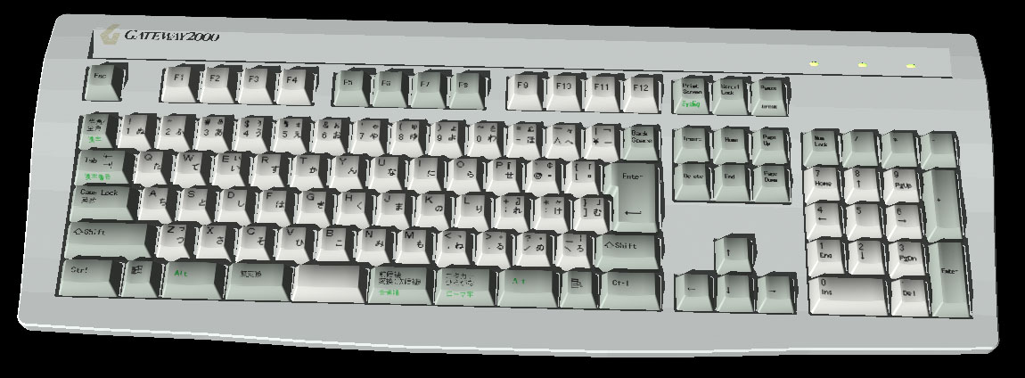 ゲートウェイ仕様の109日本語キーボードです。形状は単純なのですが、根気のいる作業だったので、オブジェクトの作成に8時間以上もかかってしまいました。少し反省。