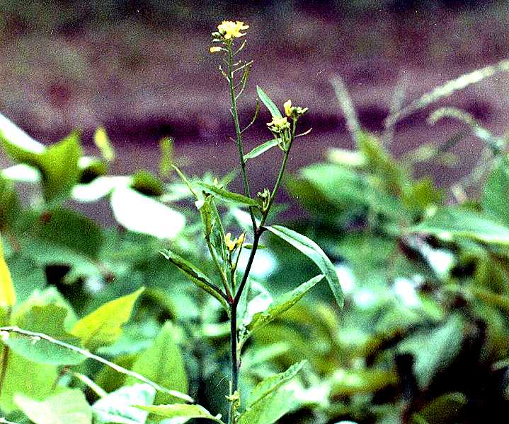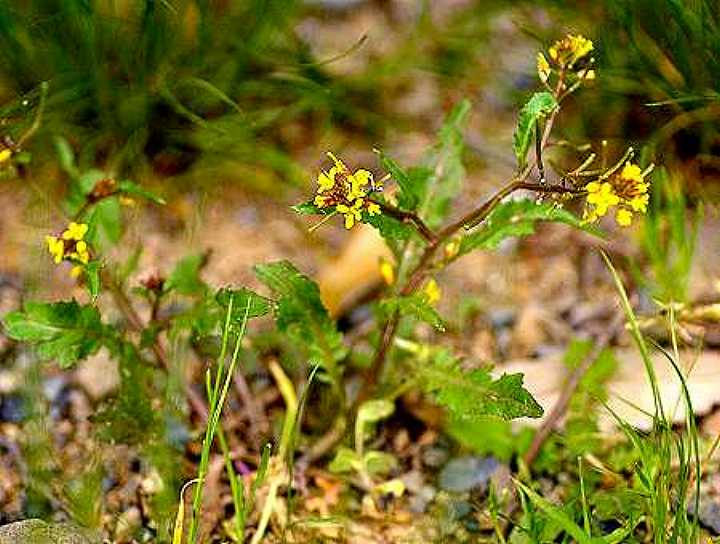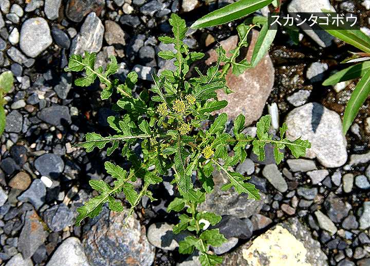 同じイヌガラシ属にスカシタゴボウというのがあります。 同じ属ですから、よく似ているのはあたりまえですが、それでも少しはちがいがありそうです。 |