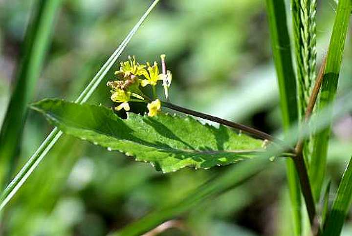 スカシタゴボウの葉は、羽状に深くさけています。 イヌガラシの葉は羽状にはなっていません。 |