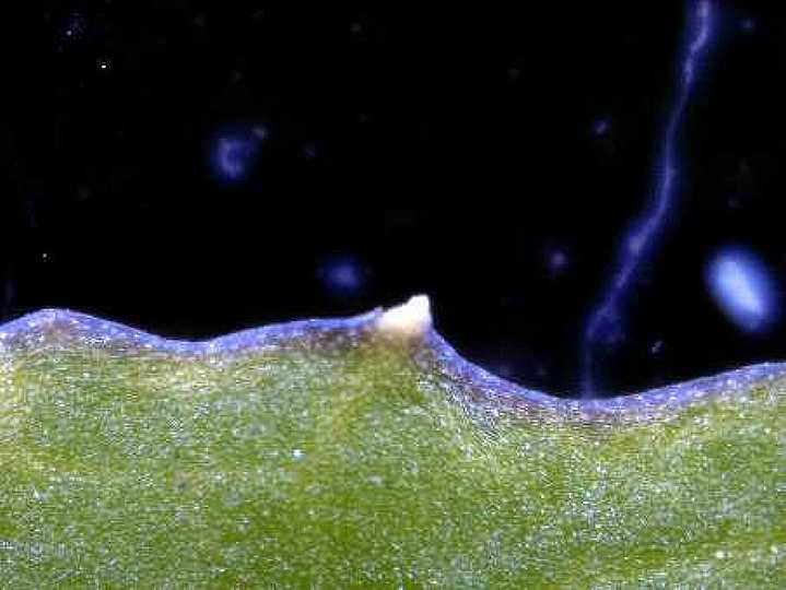 その反対に、来てほしくない虫を防ぐ手だてもしています。 トゲや腺毛などがその例です。 腺毛からはいやな臭いや有害な物質を出したりしています。 |