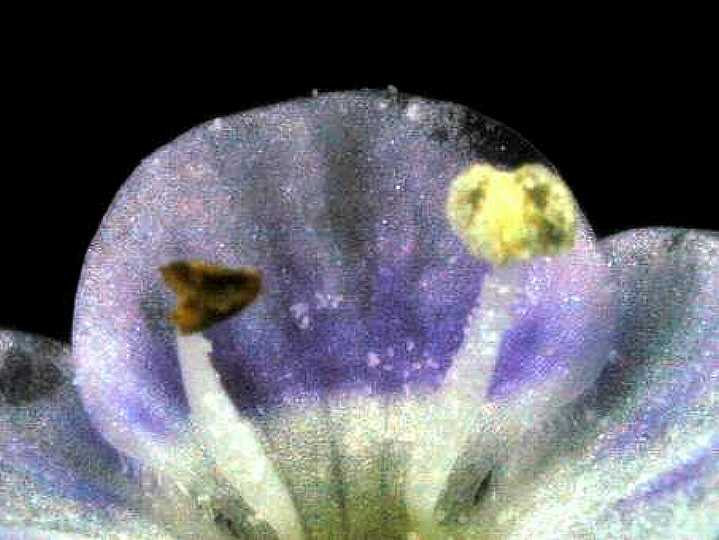 クワガタソウ属は、 めしべの おしべは 同じおしべでも左と右ではずいぶんちがいますね。 右のおしべの |