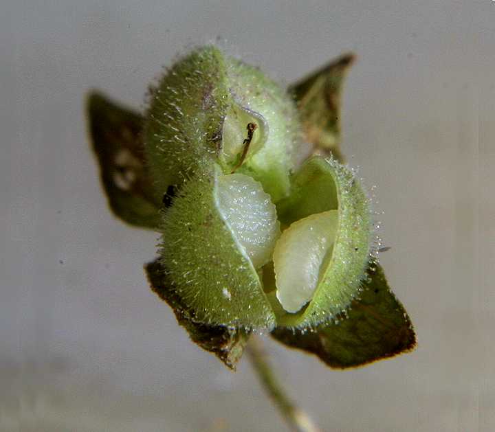 左の写真は、うらがわから見たものです。 中が どうしてこんな形になっているのでしょうか。 顕微鏡で観察していたら、風が吹いてきて、胚珠が飛んでしまいました。 イヌノフグリの種子(胚珠)は、風に これで遠くまでいけます。 |