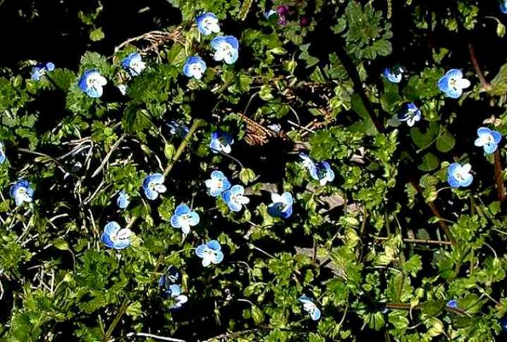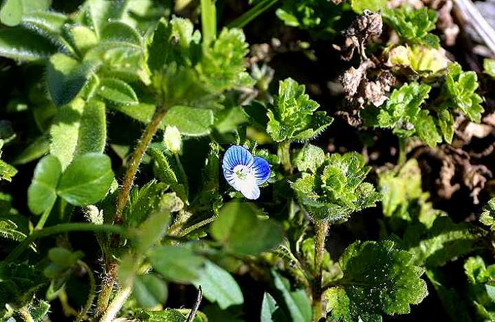 静岡市では山地をのぞいて、日だまりなどにオオイヌノフグリを見ることができます。 左の写真は、12月31日のものです。 1月には、オオイヌノフグリとともにハコベも咲き始めます。ホトケノザは、数は少ないですが、やはり咲き始めます。 静岡市の冬は、場所によっては春のようです。 |