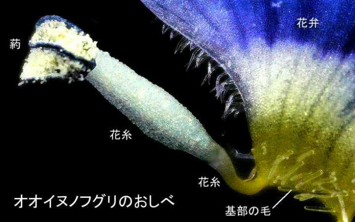 オオイヌノフグリは、 だから、オオイヌノフグリは、 花冠の基部には、毛がたくさん生えています。 おしべの APGの分類では、ほとんど重視していません。 |