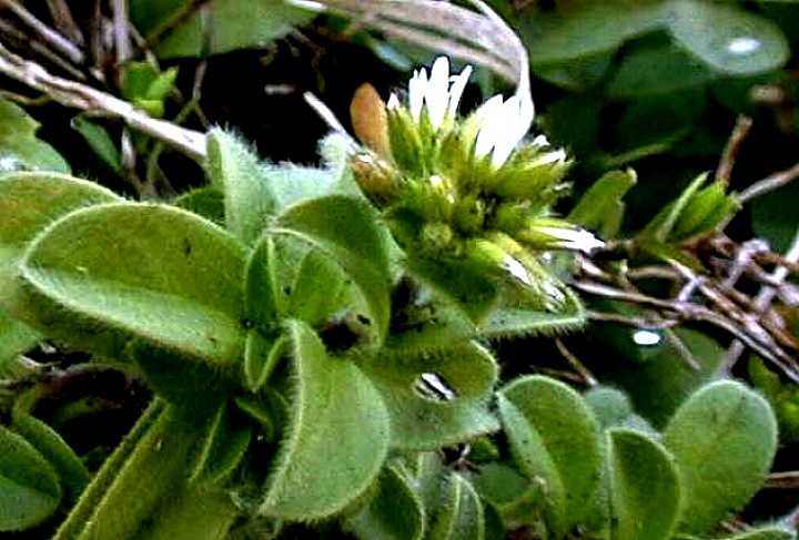 オランダミミナグサは、ナデシコ科の植物です。 同じナデシコ科のハコベと似ていますが、オランダミミナグサはミミナグサ属ですから、比べてみればそのちがいに気がつくと思います。 オランダミミナグサは、写真のように花弁が開いてないときが多く、いつ咲いたのだろうと疑問に思ってしまいます。 |