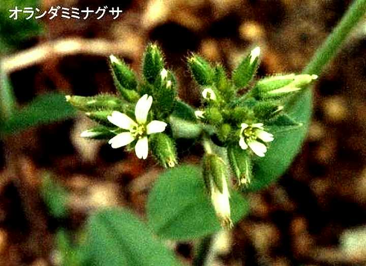 オランダという名前がつく植物はいくつかあります。このオランダミミナグサは、どこにでも見かけるもっとも身近な雑草です。 春咲きの野草ですが、静岡市では、冬でも日だまりに見つけることができます。 |