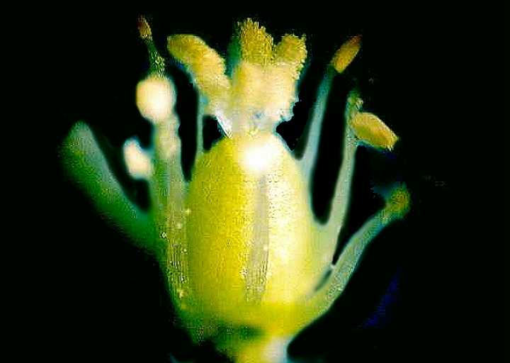 子房の先端が裂け、10歯が確認できます。 ここから種子が出てきます。 照明のせいか果皮の色が出なかったので、色を塗ってあります。 |