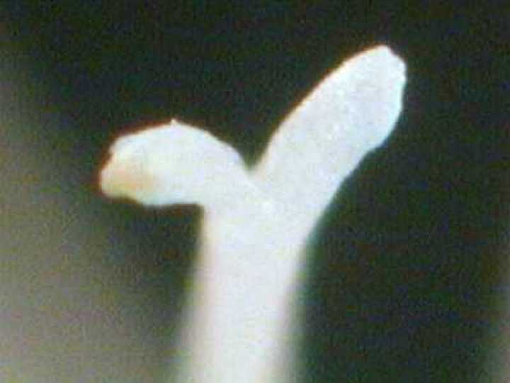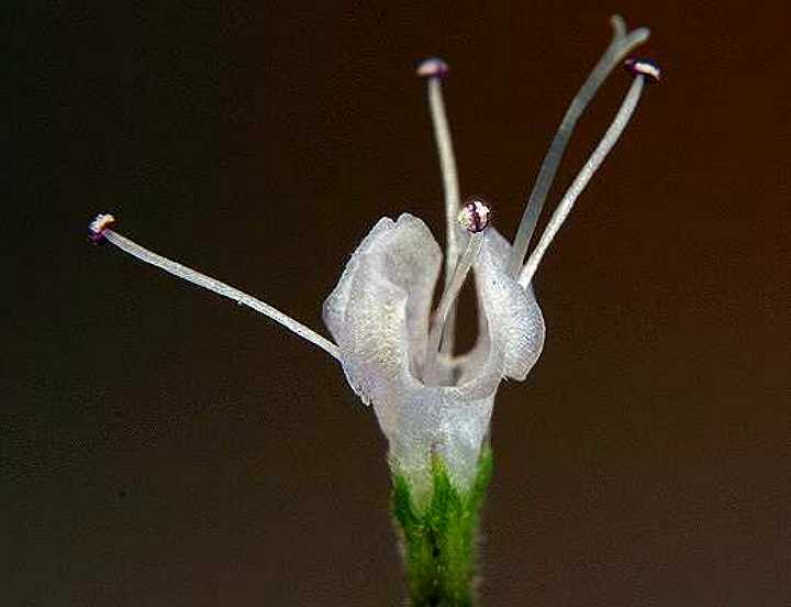 めしべは、 シソ科の柱頭の特徴は、先端が2つに裂けている点です。 |