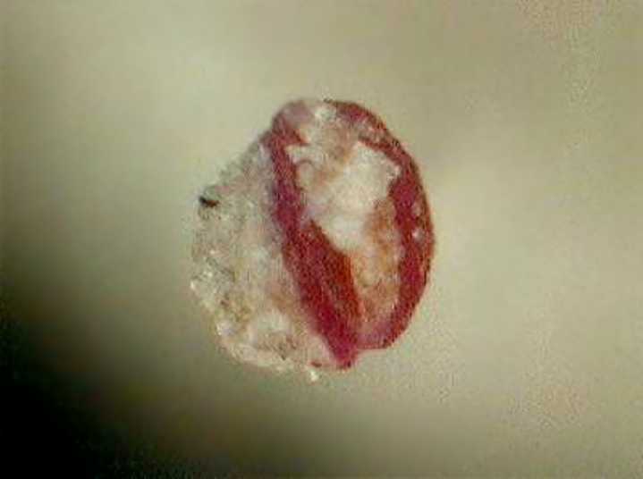 上のほうから見ると、こんなふうに見えます。 右側の葯室は開きかけており、左側の葯室は開いた後、たくさんの花粉で葯が見えなくなったようです。 |