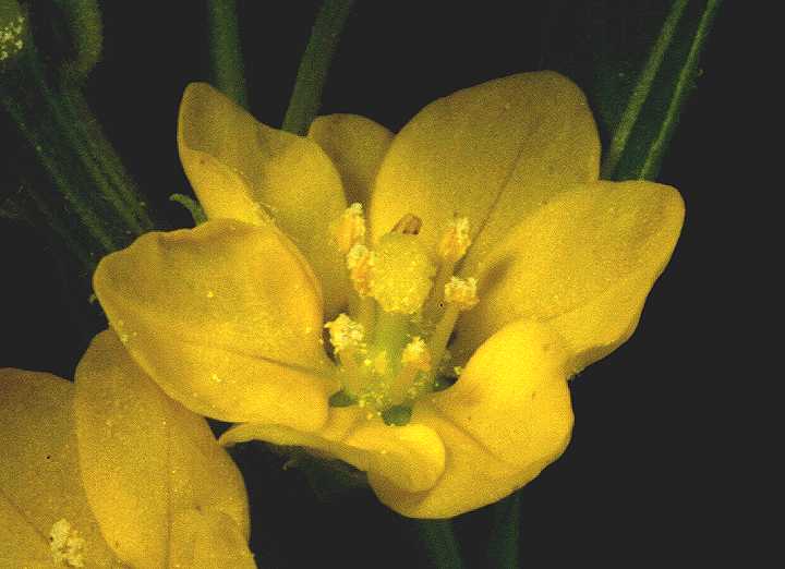 葯は、2つの葯室とそれらにはさまれたやく隔、そして、やく隔からのびだした花糸から成り立っています。 アカバナ科の葯は細長いものが多いのですが、チョウジタデ属はずいぶんずんぐりしています。 |