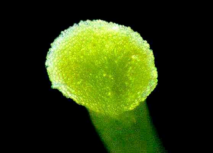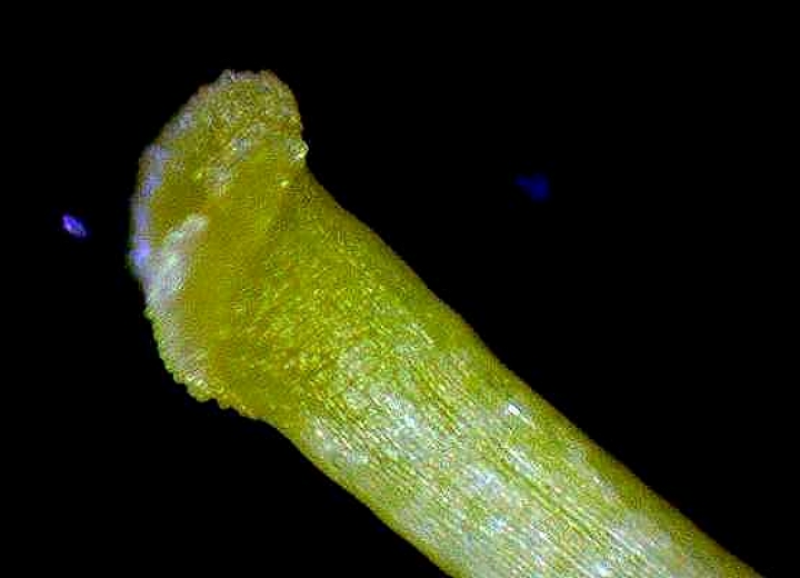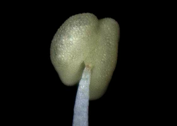 おしべを観察します。 白いところが 葯は、2つの葯室で成り立っています。 葯室で花粉がつくられます。 花粉の中では精細胞がつくられます。 精細胞は、 花粉がめしべの |