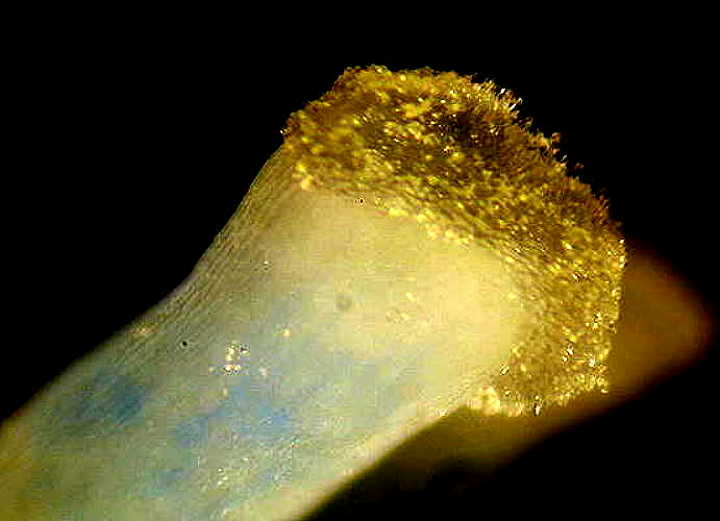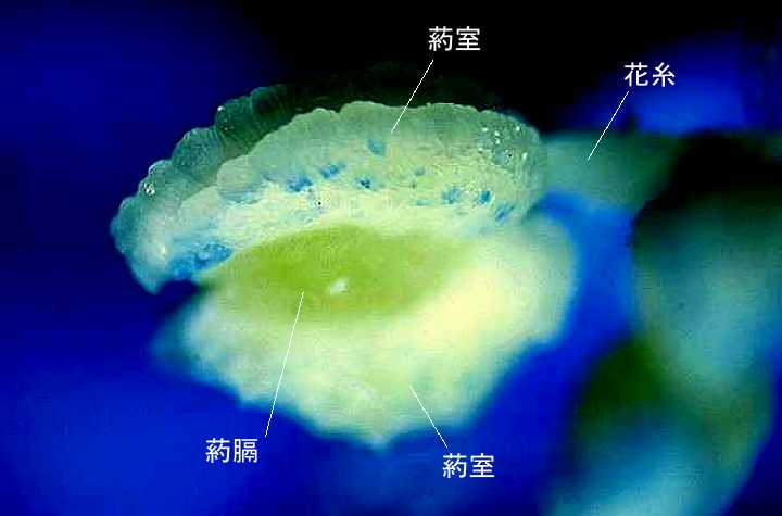 さて、おしべです。 おしべは、棒状の 葯室は花粉をつくるところです。 |