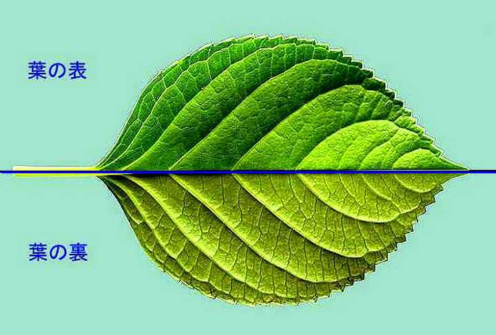 葉の表は色が 裏は、色がうすく アジサイの葉脈は、中央の主脈から 単子葉植物にも、似たようなつくりになっているものもあります。どうしても、こういう形にならざるを得ないのでしょう。 |