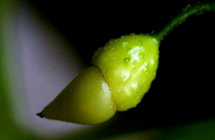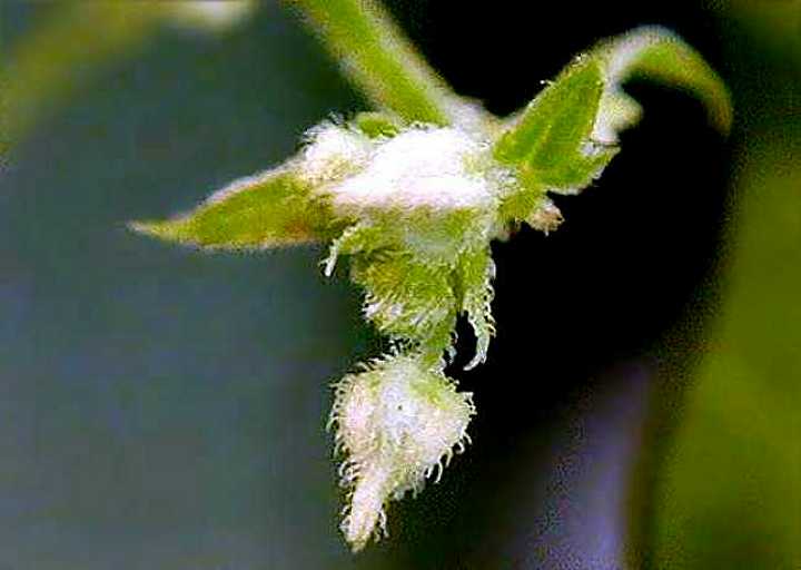 こんどは、花が 左の写真は、開花前のつぼみの状態です。 すべて毛でおおわれています。 つぼみが小さいときは、多少 つぼみが大きくなるにしたがって、内側の 先が細くとがっている |