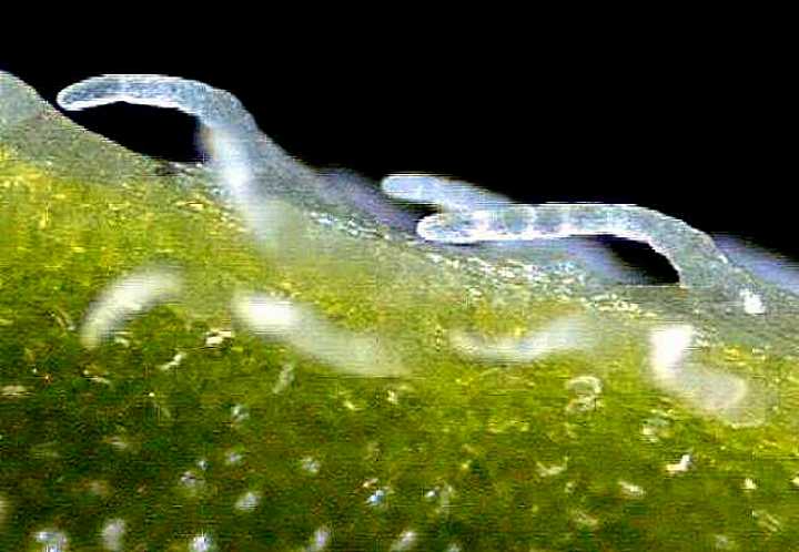 葉のへりを顕微鏡で観察してみます。 こまかい毛がたくさんはえていました。 たぶん、ここからも化学物質を出しているのかもしれませんね。 イモムシや毛虫は、葉のへりから食べていきますから、この毛は虫 いかがでしたか、ゴキヅル。 ゴキちゃんなんて、あだ名をつけられていますが、ゴキブリとまちがえないようにしましょう。 |