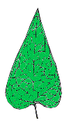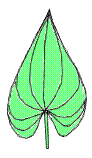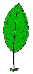 左の図は、ごく一般的な葉の図です。平べったい部分を葉身といいます。