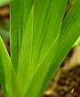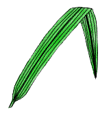 単子葉植物の葉は、平行脈といわれ、葉脈(葉のすじ)が平行で、あまり枝分かれしていません。しかし、単に平行と考えてはいけません。上の左から4つとも、みな単子葉植物のものです。 |