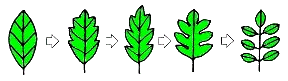 右の3種類の葉は、単葉から複葉へ移り変わっていったようすを示しています。