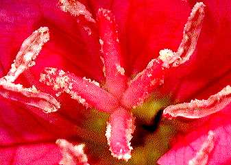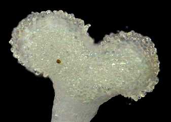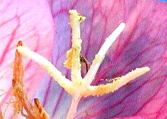 同じアカバナ科でもマツヨイグサ科の柱頭は十字形の4分裂ですが、それ以外の属ではまちまちのようです。 |