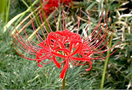 むかし飢饉の時にヒガンバナの球根を何度も水で さらして毒を抜き食用にしていたそうです。 |