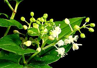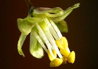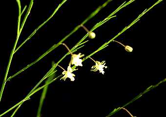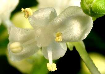 古い分類では、子房上位はユリ科、子房下位はアスパラガス科といわれてきましたが、アスパラガス科には上位も下位もあるので、子房の位置だけでは判断できません。 | 下の三種は花被の内側に子房が見えるので、子房の位置はすべて上位です。 |