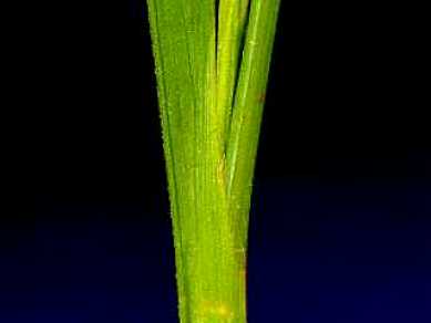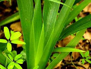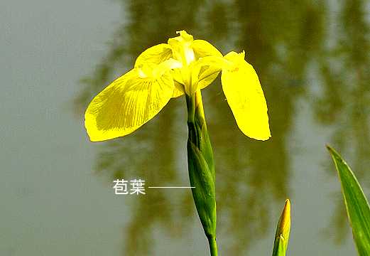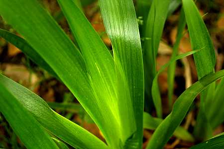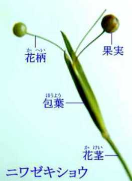 ・上向きの花冠 ・ おしべは3本 ・ 子房下位 ・ 2枚の苞葉 ・ 単面葉 ・ 葉のつき方は |