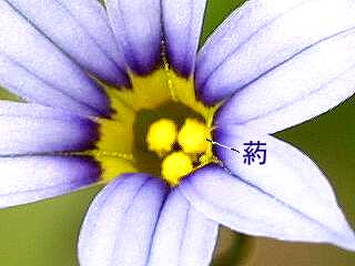アヤメは単子葉植物の中でも豪華絢爛たる姿に進化してきました。目立たない内花被に比べ、外花被が派手になります。 | めしべが花被のように変化したものが現れました。しかしニワゼキショウのように単純なものあります。 |