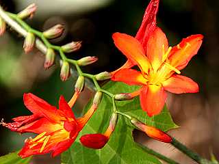 ほとんどが上を向いて咲きますが、ヒメヒオウギズイセンのように花序がたれ下がった影響で、横向きや下向きのものが多くなっています。 それでも上に向こうとしているようすは何となく理解できます。 |