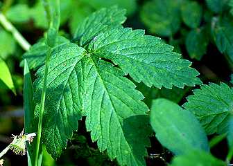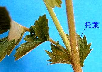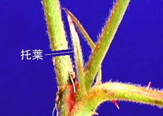 複葉の基部にある葉が托葉です。 ナワシロイチゴの托葉は線形で葉のようには見えません。 |