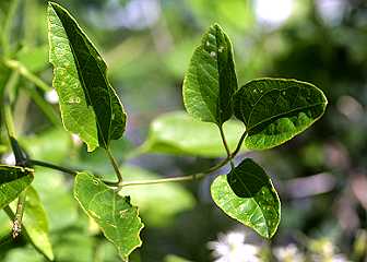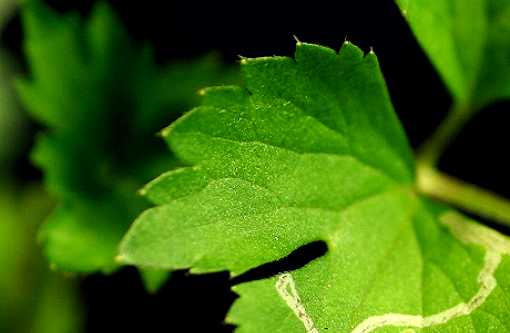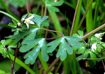 キンポウゲ科は双子葉植物だから葉脈は網状脈です。 ところが他の科の網状脈とは少し異なります。 参考までに、バラ科のナワシロイチゴはごく普通の網状脈です。 上の2枚の写真はキンポウゲ科のものですが、どことなく葉脈のようすがちがいますね。 キンポウゲ科は早期真双子葉植物の中ではもっとも早く出現した科だから、中核真双子葉植物のようには進化が進んでいなかったということでしょう。 |