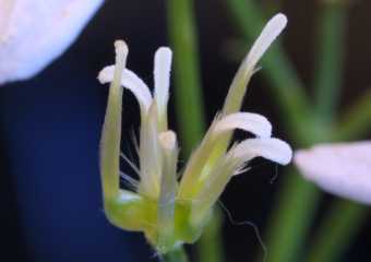 上の二つに比べると数は少なくなっています。 しかし、多くの花に見られる中央に1本のめしべとは明らかに異なります。 |