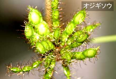 シロツメクサにもさやがあるのです。 オジギソウはさやが放射状につきます。 |
