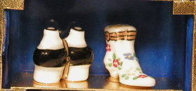 2段目には双眼鏡とブーツのリモージュボックス |