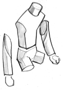 立体にするとこうゆう考え方だよ。書き写さなくてもいいよ。今は服を着ている人物を簡略化したらどのような形になるか頭の中で理解しようね。