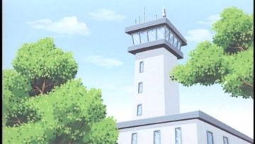 この管制塔は、カツオたちがゴール地点から見たものとして描かれています。 「飛行場展望広場」から見た管制塔が、まさにアニメで描かれていた管制塔でした。 他の方向から見ると窓の様子などが違いますので、ここで間違いありません。 |