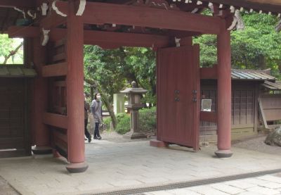 階段を上がって境内に入る門は、深大寺の山門でした。 これも完全にそっくりに描かれています。 |