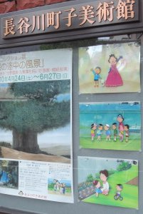 長谷川町子美術館は、長谷川姉妹が蒐集した絵画が中心の展示です。 東山魁夷や平山郁夫なので、あまり趣味に合いません。 もっと長谷川町子作品に重点を置いて展示すればいいのに。 屋外にはこの「春のスペシャル」のセル画が…。 貴重なセル画を日光に曝して退色させてしまうとは、あまりにももったいない。