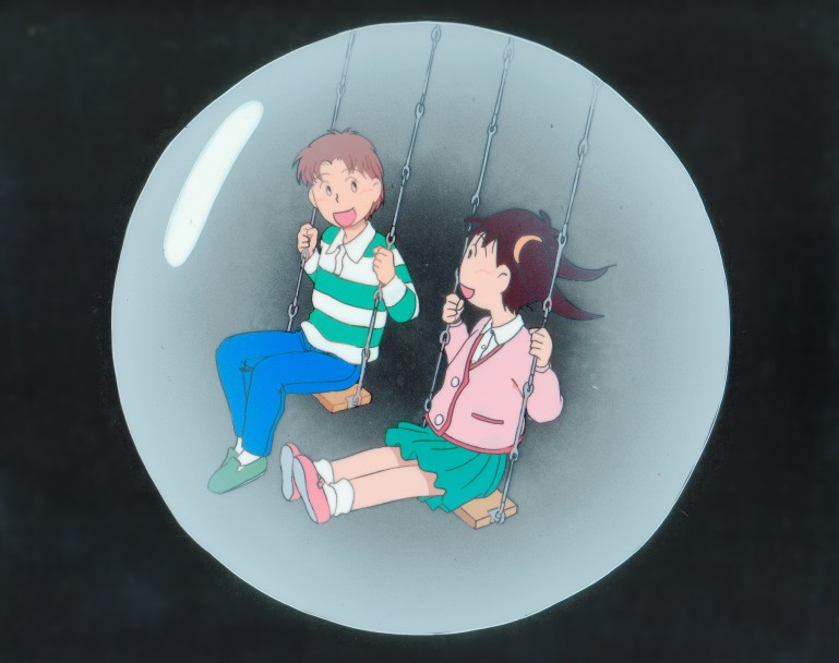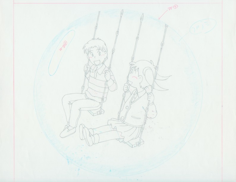 某所で手に入れた『あずきちゃん』の第1期EDセル画。 これらは、上にスクロールしていくシーンですので、しゃぼん玉だけのセルも含め、長さ1mもある長尺のセル4枚に分けて書かれています。 スキャンしたのは、その一部です。 正直、保存に大変困るサイズですが、第1期EDはセル枚数がほとんどないはずですので、結構貴重品ではないかと思います。