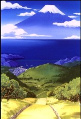 香月先生の実家のみかん畑は、富士山の絶好の展望台のようだ。 このように富士山の全景が海の背景に見えるのは戸田村以北で、土肥町まで行くとどうしても陸地にかかってしまうことが今回判明した。 さすがにみかん園めぐりはできなかったので、このみかん園の場所の特定はできなかった。 しかし、戸田村は基本的に西向きなので、こういうように山から海を見下ろして港と富士山が同じ方向に見える場所は限られると思う。 写真8は戸田村北部、井田の煌きの丘から見た富士山であるが、眼下に見える埠頭の位置関係なんかはちょっと似ているような気もする。 驚くべきは、みかん狩りのシーズンである10月〜11月に合わせて、富士山に雪が積もっていることである。 作画の取材に行くのは放送の数ヶ月前だろうから、そのときは雪のない富士山だったはずで、しっかり適切な量の雪が描いてあるのはいい仕事と言えるだろう。 その反面、ちょっとした矛盾点も見つかった。 西伊豆から富士山が見えるのは基本的に北の方角なのだが、最後の夕焼けのシーンを同じ構図で書いてしまっている。 さすがに夕焼けの絵に富士山を出さなかったのは、このことをわかっていたからではなかろうか。 ともかく、西伊豆の海は西向きで、海に沈む夕陽はとてもきれいだった。 |