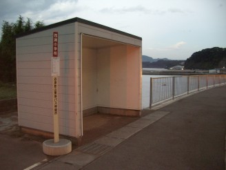 ![]() 海沿いのバス停 ![]() とその向かいの釣具店 |