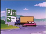 談合坂SAを野山父はうっかり通過してしまう。さすがにSA入口の写真は撮れなかった。しかしこの画面ではどうも「富士川」と書いてあるように見えるのは気のせいだろうか? おそらく作画スタッフもSA入口の写真が撮れなく、別の資料写真 (東名富士川SA) を参考にして作画したのではないだろうか? |