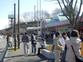 小笠原家の車が高速のSAに入ったところで、白樺湖に行くヨーコちゃんに遭遇する。 「ここは何ていうんだっけ?」と聞く勇之助に、ヨーコちゃんは怒って教えてくれずに立ち去ってしまうが、この風景は中央道下り線の談合坂SAであった。 SAの建物の入り口にかかるアーチ状のひさし、柱の配置、3本セットになった街灯、右手の木とベンチ代わりになっている植え込みなど、ピンポイント特定が可能であった。 背景の丘も、冬なので木々の葉が落ちているが、春になればきっと同じようになると思う。 ここが談合坂SAということは、だいずがトイレに行くために野山車が寄ったのは藤野PAであったはずだが、その画像は作品中には出てこない。 |