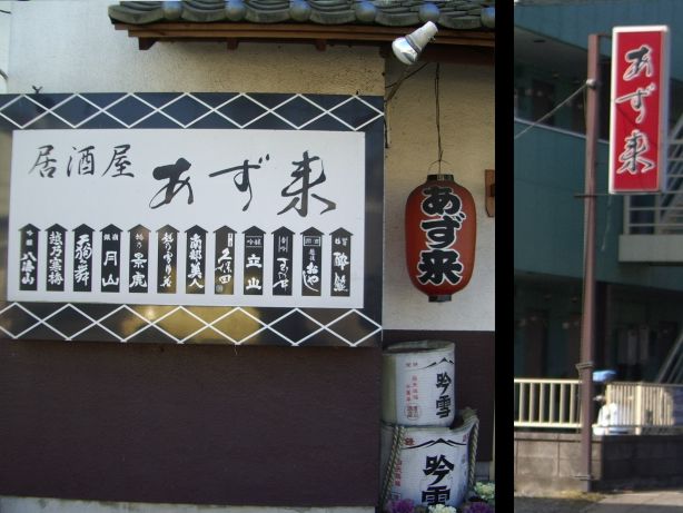 中央自動車道相模湖ICから5kmくらいのところに、居酒屋あず来があります。 国道421号線の内郷郵便局のすぐ横です。 名前は地名の「阿津」からでしょうね。 あずき色の看板がイイ!