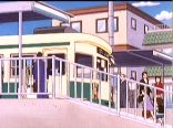 左の画像は、電車の中から遊園地が見えるというシーンです。 この遊園地が「あらかわ遊園」であるというのはこれまた定説ですが、実際には遊園地は駅から歩いて5分くらいのところにあり、車窓からは建物に隠れて見えません。 遊園地の前まで行って同じように見える角度から写真を撮りましたが、アニメの画像は本当に何の工夫もなく(笑)、全くのそっくりそのままでした。 |