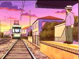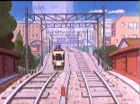 やはり都電沿線の印象に残る風景のひとつだけあって、何回も繰り返し登場します。バンクを使わないのが偉いところです。 70話では、橋の色や線路の様子、町並みなど、やや忠実度は落ちているようです。 鬼子母神前以南は明治通りなど大通り沿いの路線となり、他の区間とはやや雰囲気が違っています。 また、乗客の数も少ないようでした。 |
