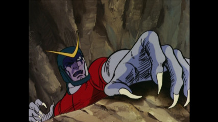 ストーリー: 恐竜帝国の帝王ゴールから「栄光か死か」の二者択一を宣告されたラドラは、ゲッターロボと戦うものの、メカザウルスを破壊され単身で敗走中に、崖から溶岩流に向けて落下してしまいます。 それを目前にしたゲッター1のリョウは、思わず敵ラドラを助けてしまいます。 しかし、逃走したラドラは再び来襲し、ゲッターロボは溶岩の熱で大ピンチに…。