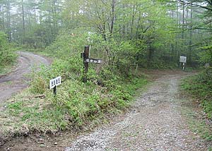 左の写真の道は旧碓氷峠へと向かう道で、写真左の一段上の道が霧積温泉方面への道であり、その道はまた安政遠足や和宮道へと続く道でもあります。 |