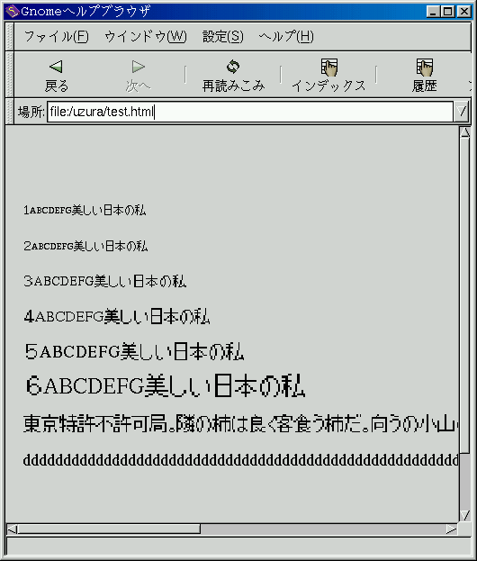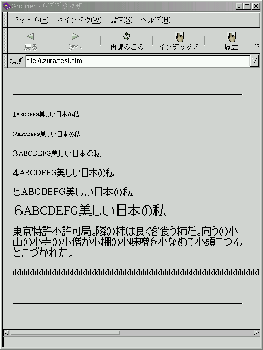 - Higuchi さんのgtk-xmhtmlのパッチの効果。gnome-libs 1.0.50 (CVS版でテスト)。テストに使用した HTML はこれ